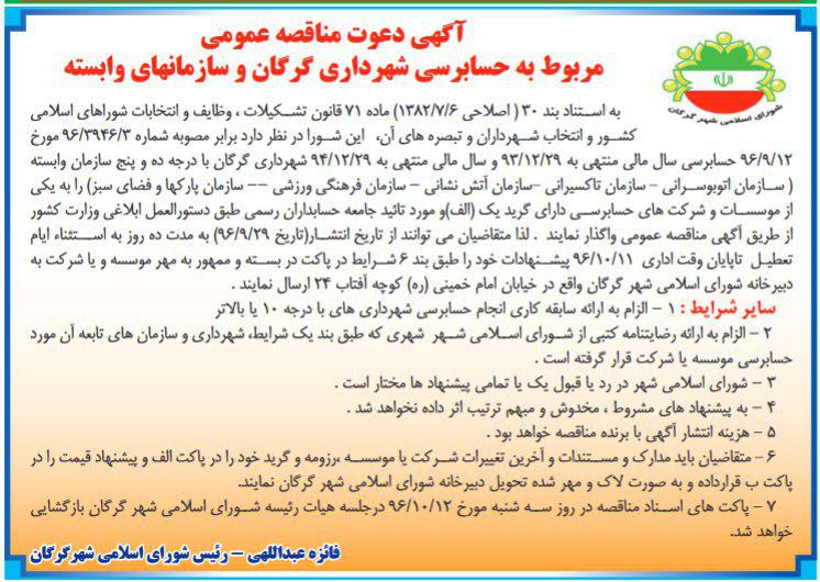 آگهی مناقصه حسابرسی