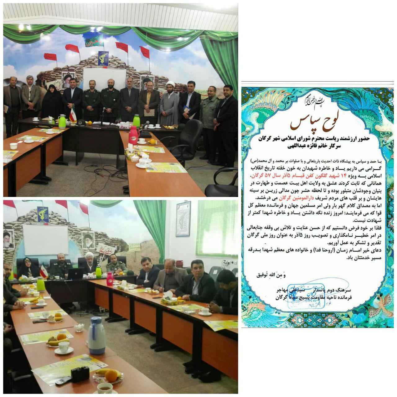 ✅تقدیر فرمانده سپاه گرگان از اعضای شورای اسلامی شهر گرگان