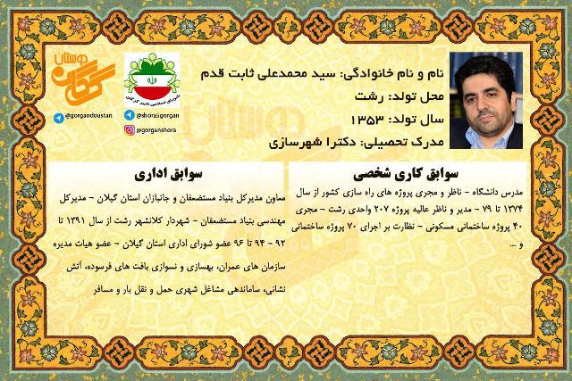 فایل صوتی ارایه برنامه های پیشنهادی سیدمحمدعلی ثابت قدم ه عنوان داوطلب تصدی شهردار گرگان به شورای اسلامی شهر